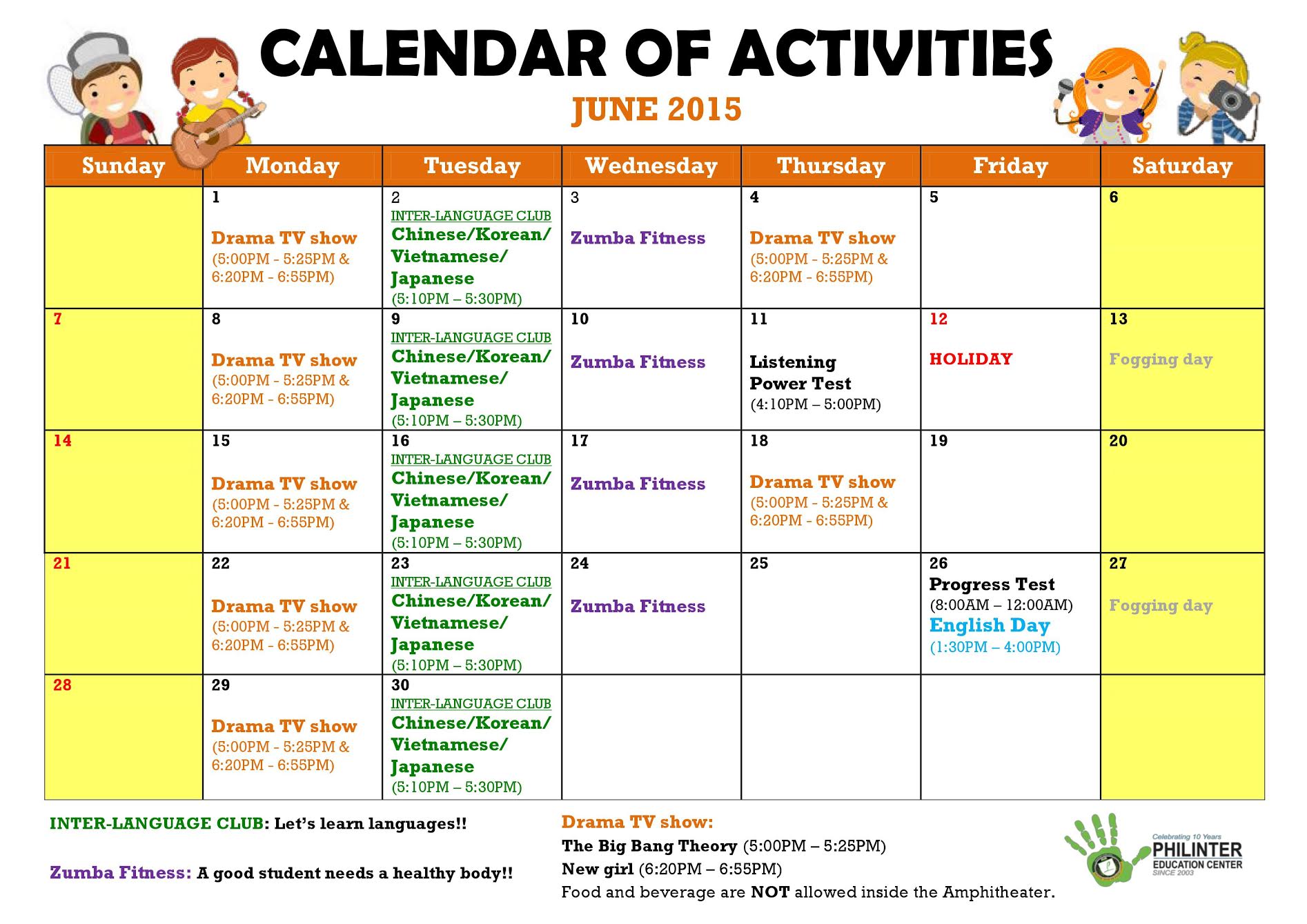 Tin tức cập nhật về lịch học và hoạt động tại Trường Anh ngữ Philinter tháng 6/2015 như sau: