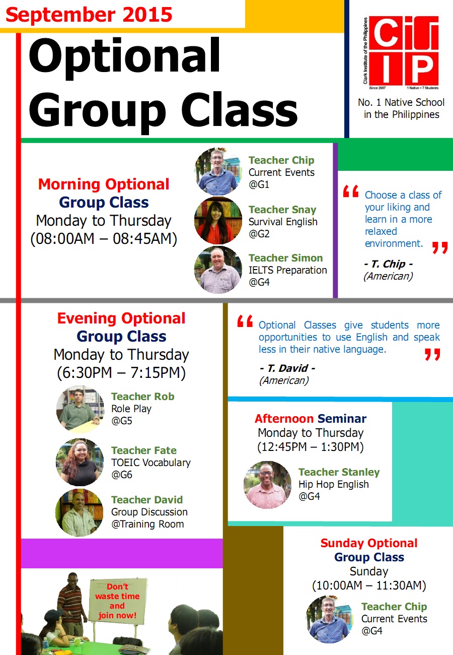 Trong tháng 9 này, CIP mở các lớp học tùy chọn sáng, trưa, tối và vào Chủ nhật như sau: