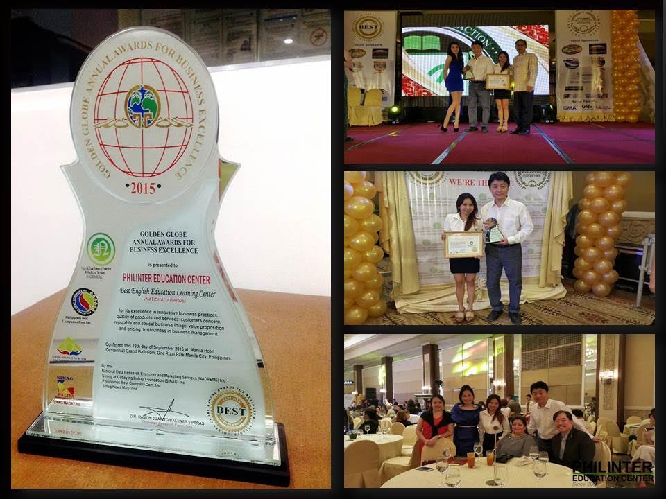 Trường Anh Ngữ Philinter đã vinh dự nhận giải thưởng Quốc gia này với danh hiệu “BEST ENGLISH EDUCATION LEARNING CENTER” được trao tặng bởi Golden Globe Annual Awards dành cho Tổ Chức Xuất Sắc 2015.