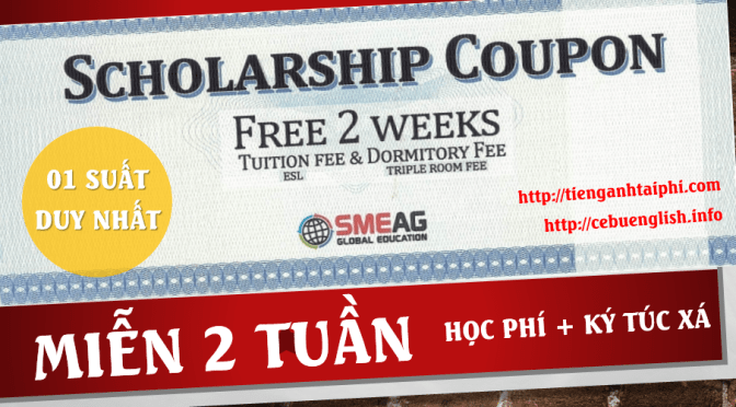 Trong chuyến sang thăm 4 cơ sở của trường SMEAG từ 19 đến 22/10/2016 vừa qua, MICE vinh dự được nhận coupon ưu đãi đặc biệt nhằm tri ân Quý học viên Việt Nam để tạo thêm cơ hội để các bạn du học tiếng Anh tại Philippines. Đây là ưu đãi lớn nhất từ SMEAG với mức giảm học phí rất hấp dẫn từ trước đến nay và chỉ dành cho 01 bạn duy nhất từ MICE. Vậy ưu đãi hấp dẫn như thế nào, cùng xem nhé!