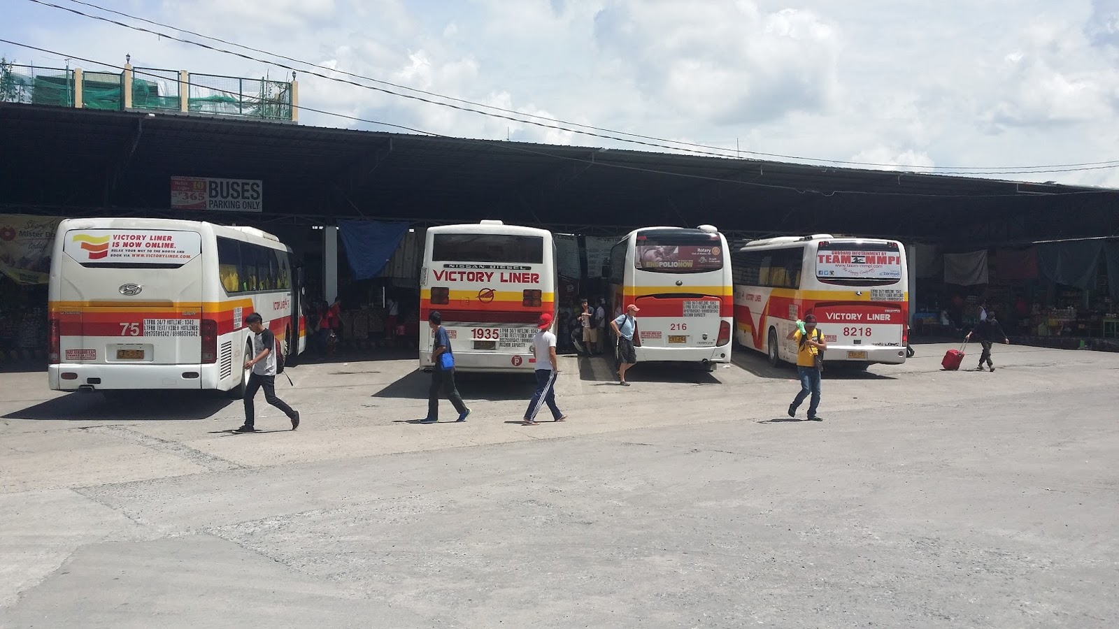 Đi sâu vào bên trong cho tới khi thấy biển hãng xe bus Victory Liner hoặc biển chỉ dẫn (như hình)