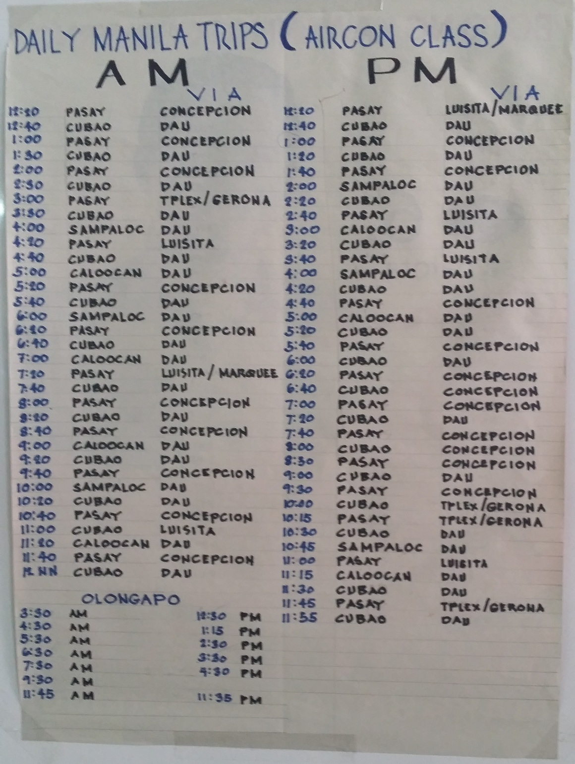 Tại đây, học viên có thể hỏi xin chỉ dẫn xem xe nào đi đến thành phố Baguio và mấy giờ xe chạy (thông thường cách 1 tiếng lại có 1 chuyến đi đến Baguio, chuyến đầu tiên là từ 8:00 và chuyến cuối là 22:00).