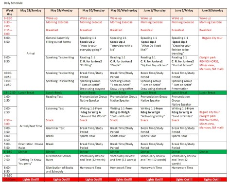 Đưa đón và đi lại: Rất thuận tiện cho bé vì có chuyến bay trực tiếp, chỉ bay một chặng từ Việt Nam tại sân bay Tân Sơn Nhất hoặc Nội Bài đến Manila. Sau đó đoàn được đón và lên xe về Baguio. Đường đi đẹp, núi non 2 bên đường tạo cảm giác sảng khoái cho học sinh và phụ huynh trên suốt cuộc hành trình.