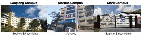 Học xá Clark nằm tại thành phố Clark cách thủ đô Manila 2 giờ ô tô. Học xá Longlong và Martin nằm tại thành phố sương mù Baguio cách Manila khoảng 6 giờ ô tô.