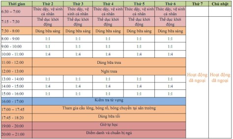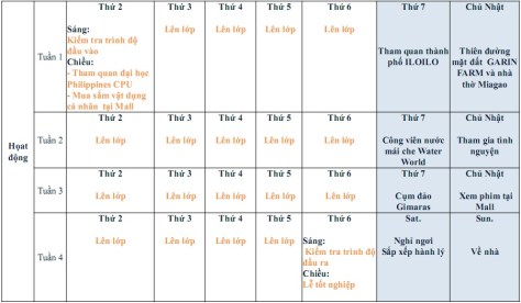 - Phí tham gia hoạt động cuối tuần, phí di chuyển tham quan du lịch trong toàn bộ chương trình