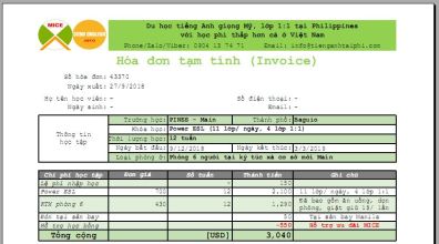 1. Thông tin chi phí rõ ràng, minh bạch được thể hiện trong invoice báo giá và cam kết không ẩn dấu bất kỳ chi phí nào hoặc phát sinh thêm trong quá trình du học, ngoại trừ các chi phí tạm tính theo mức trung bình như điện, nước… theo thực tế sử dụng của học viên.