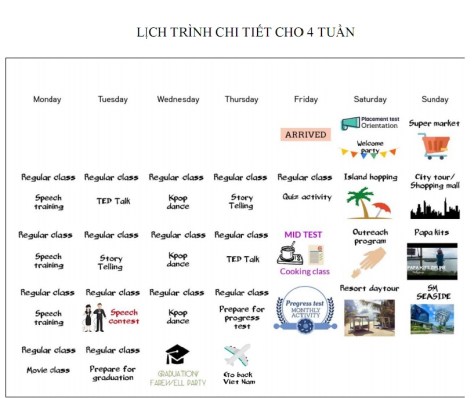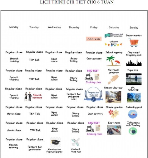 - Các câu lạc bộ tiếng Anh học thuật mỗi tối và các hoạt động ngoại khóa cuối tuần thú vị.