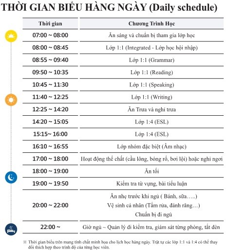 Được sử dụng tiếng Anh giao tiếp cả ngày, kể cả sau giờ học vì học sinh được sắp xếp ở cùng phòng giáo viên.