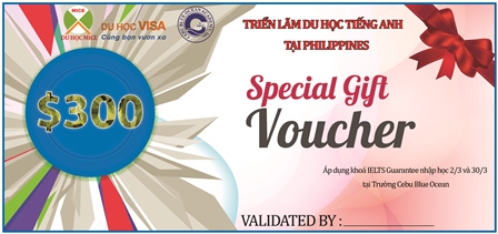 Tất cả phụ huynh, học sinh tham gia buổi triển lãm Du học tiếng Anh Philippines sẽ được tặng 1 Voucher trị giá 100 USD.