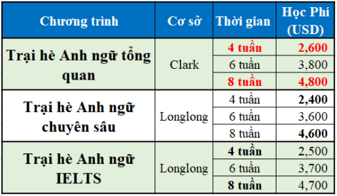 Khóa học Trại hè tiếng Anh English Summer Camp ESL và IELTS tại Trường HELP Clark và Longlong chính thức khai giảng vào nhiều đợt, khởi hành từ 25/5 và kết thúc vào ngày 18/07/2019.