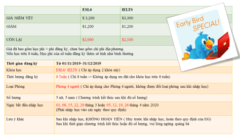 | Khóa học | Giao tiếp ESL6 (USD) | Luyện thi IELTS (USD) |