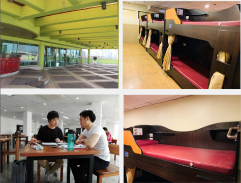 - Phòng ký túc xá (3 giường/phòng), 4 bữa ăn uống/ ngày
