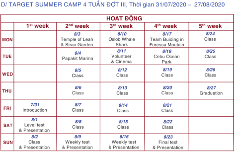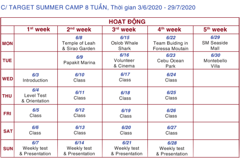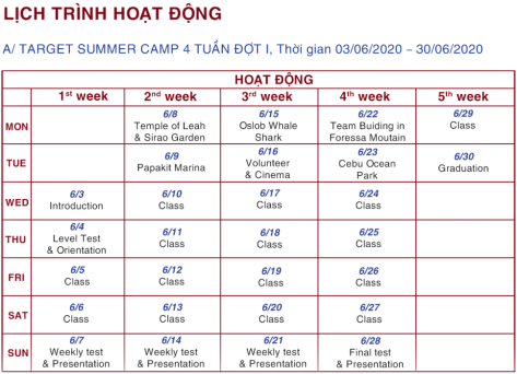 Chương trình học tiếng Anh – Sinh hoạt tại Target English Summer Camp 2020