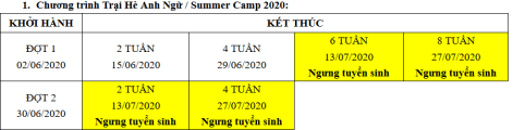 - Đăng ký trễ có thể Trường bạn chọn đã hết xuất đăng ký trại hè