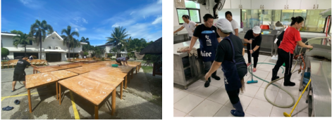 Sau mỗi lần dọn dẹp phòng ở và các khu vực phòng học, nhà ăn…. Trường sẽ cho xịt sát khuẩn. Đặc biệt khu vực nhà ăn luôn được làm sạch định kì.
