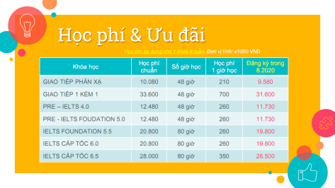 - Khóa IELTS cấp tốc 6.0-7.0: giảm 1.5 triệu chỉ còn 19.800