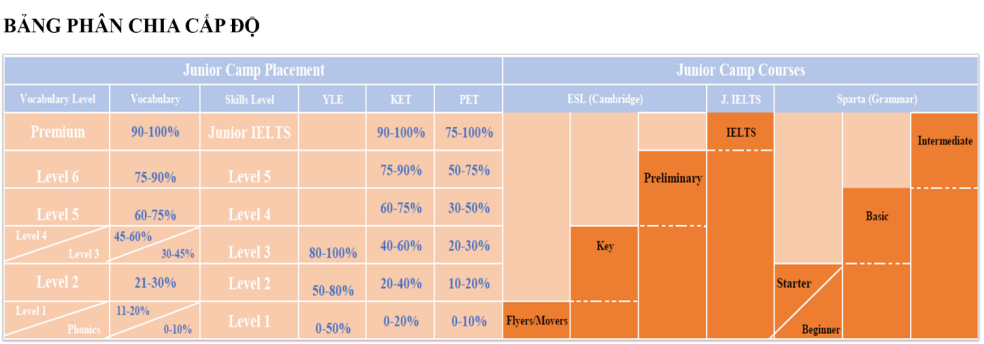 - Chương trình gồm có hai chương trình học tập dành cho các bé là: SPL & ESL cho bé 7 đến 17 tuổi và TOELF & IELTS cho bé từ 13 đến 17 tuổi.