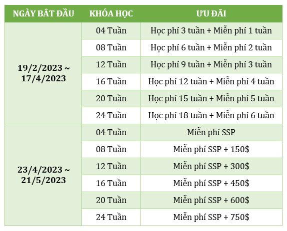 Xem các ưu đãi hiện tại áp dụng cho học sinh: