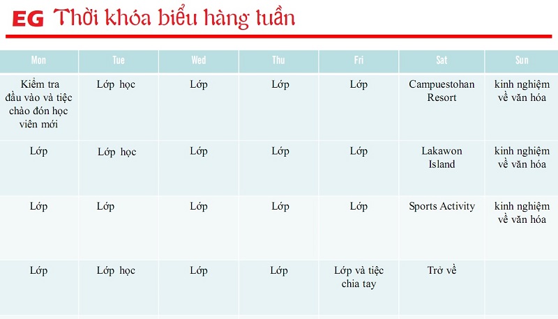 - Phí tham gia hoạt động cuối tuần, phí di chuyển tham quan du lịch trong toàn bộ chương trình