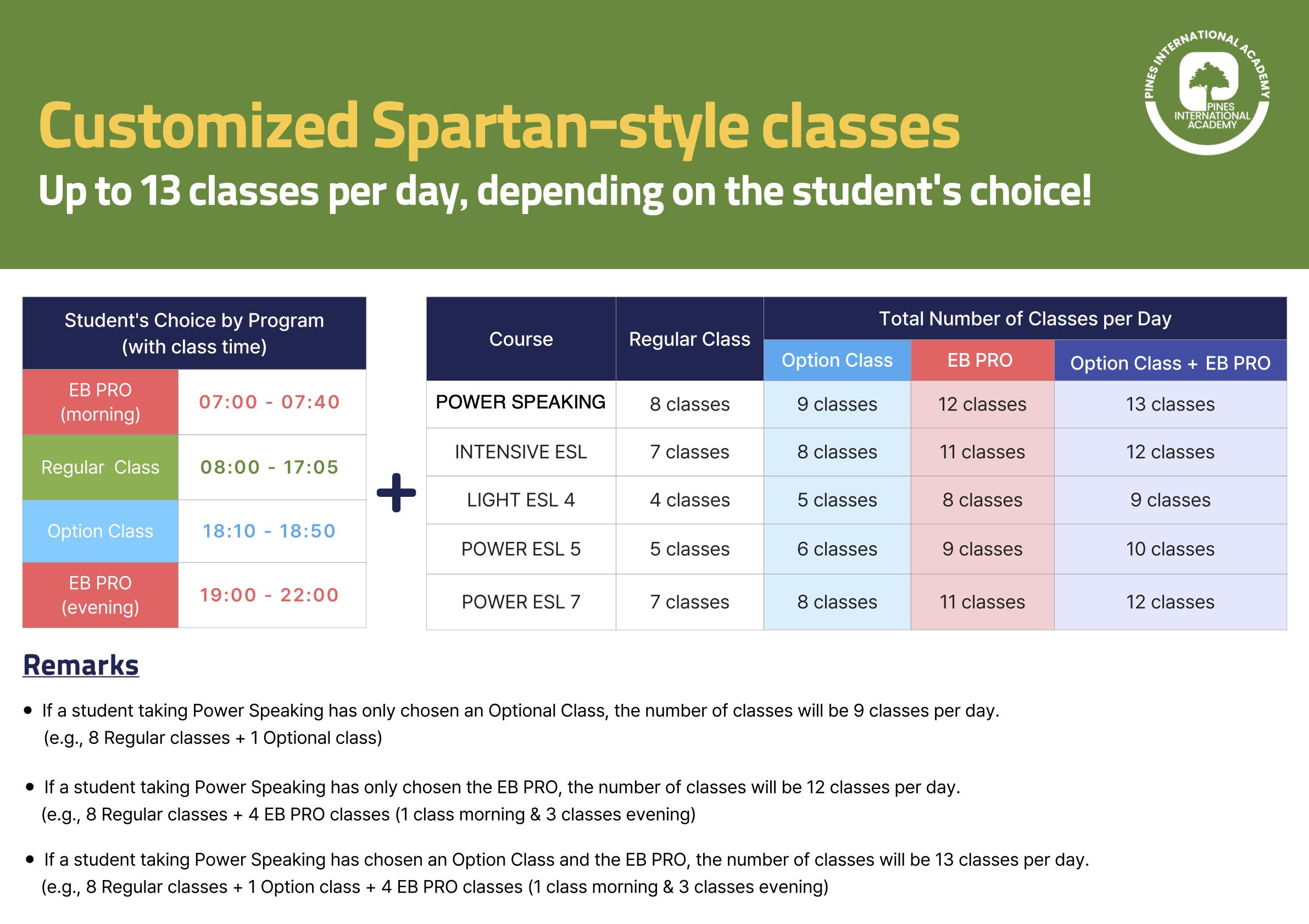 Trường Anh ngữ Pines một lần nữa giới thiệu phiên bản nâng cấp của lớp tùy chọn – Option Class với tên gọi EB PRO (English Booster Program) nhằm mục tiêu đẩy nhanh quá trình cải thiện khả năng giao tiếp cho học viên tại Pines Main Speaking Campus với ưu điểm: