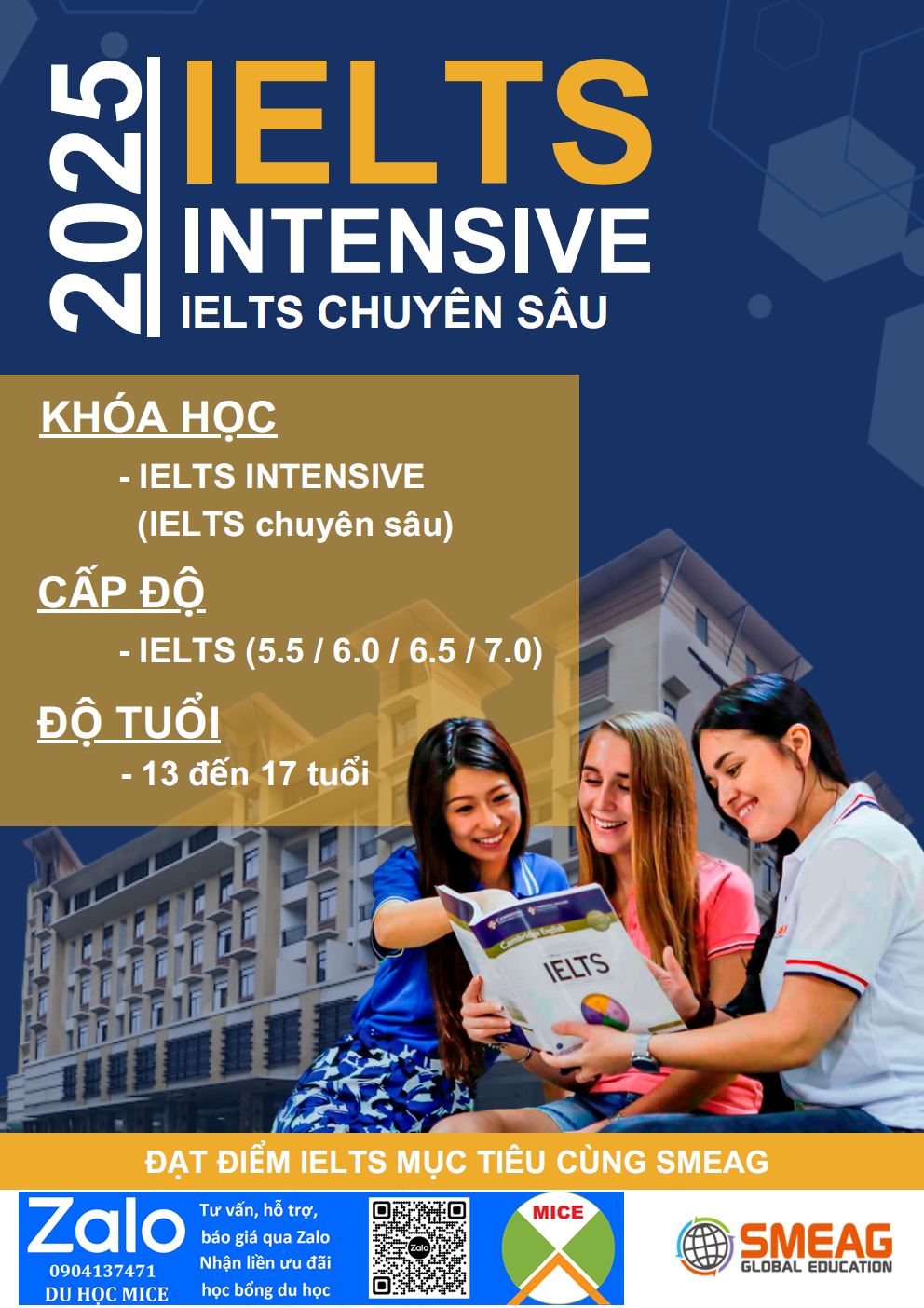 INTENSIVE IELTS tại SMEAG là chương trình IELTS tăng cường hiệu quả cao nhất tổ chức từ 2016 cho học sinh Việt Nam, được thiết kế chuyên biệt dành riêng cho học viên từ 13 – 17 tuổi có định hướng du học sớm tại các trường đại học hàng đầu thế giới.