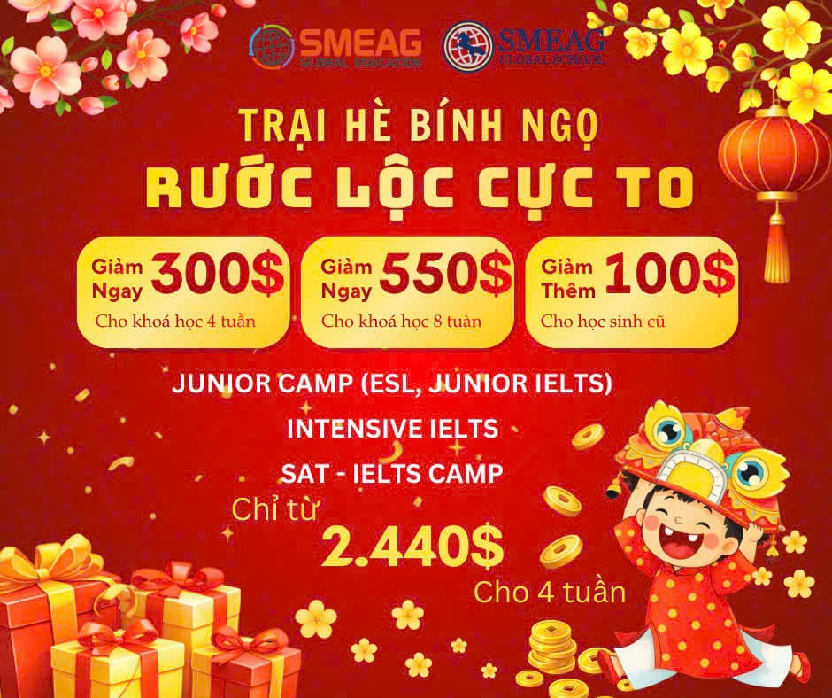 🎉 ƯU ĐÃI TỚI 650$ TRẠI HÈ TIẾNG ANH CHUYÊN SÂU SMEAG 2026