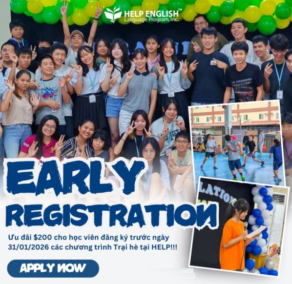 Ưu đãi Trại hè HELP 2026 cho đăng ký sớm: Giảm 200$ cho đăng ký trước 31/1/2026, Giảm 200$ cho đăng ký nhóm từ 2 học sinh đến 30/4/2026.