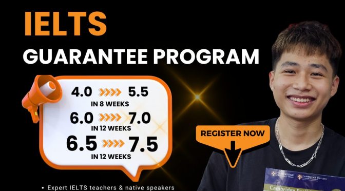 Chương trình IELTS đảm bảo điểm 8 tuần là giải pháp tối ưu cho những học viên cần chứng chỉ quốc tế trong thời gian cực ngắn. Với sự hỗ trợ trực tiếp từ tư cách là trung tâm thi của Hội đồng Anh/ IDP và quy trình kiểm soát chất lượng giáo viên nghiêm ngặt nhằm mang lại tỷ lệ thành công cao cho học viên, đi kèm với cam kết minh bạch. Khóa học đòi hỏi sự kỷ luật tuyệt đối và cường độ tập trung cao, phù hợp với những người có nền tảng tiếng Anh nhất định muốn bứt phá điểm số nhanh chóng.
