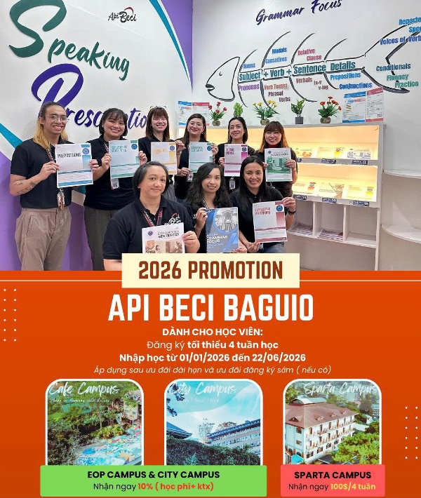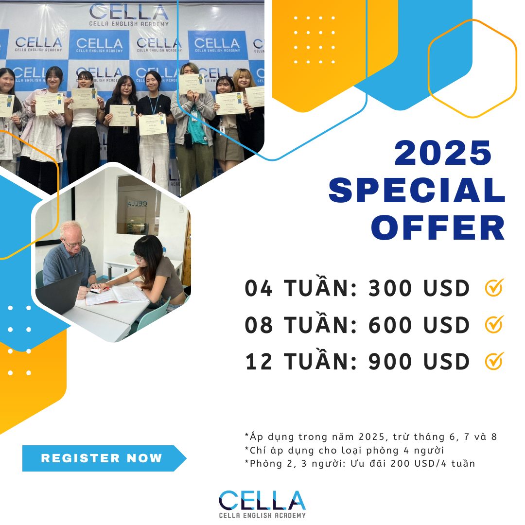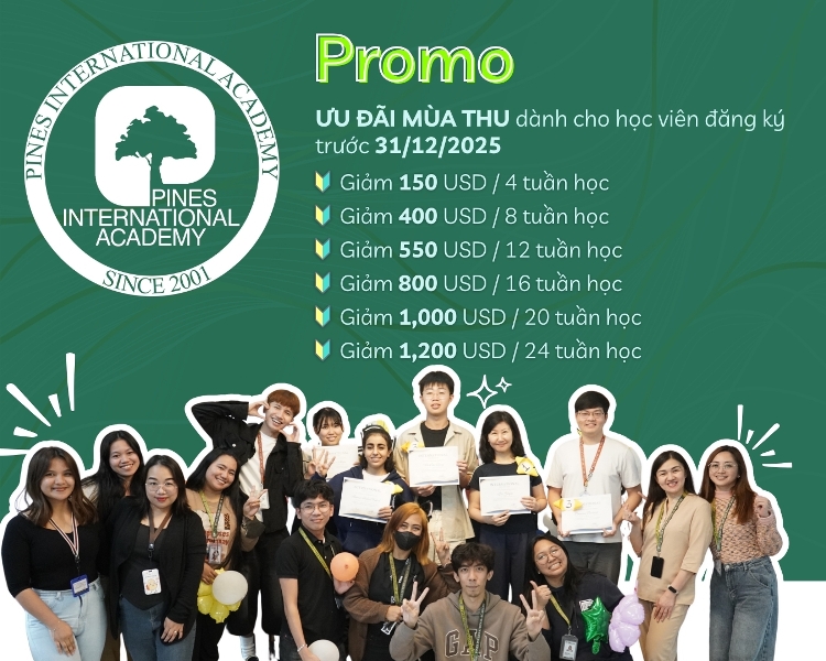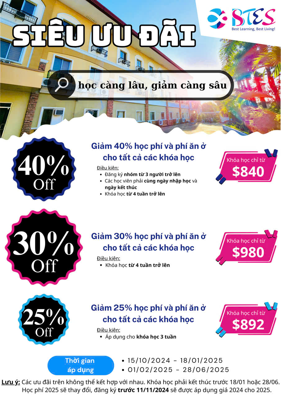 Nếu học viên nhập học từ 5/1 đến 4/5/2025: Giảm 100$ cho mỗi 4 tuần tại cả 2 cơ sở