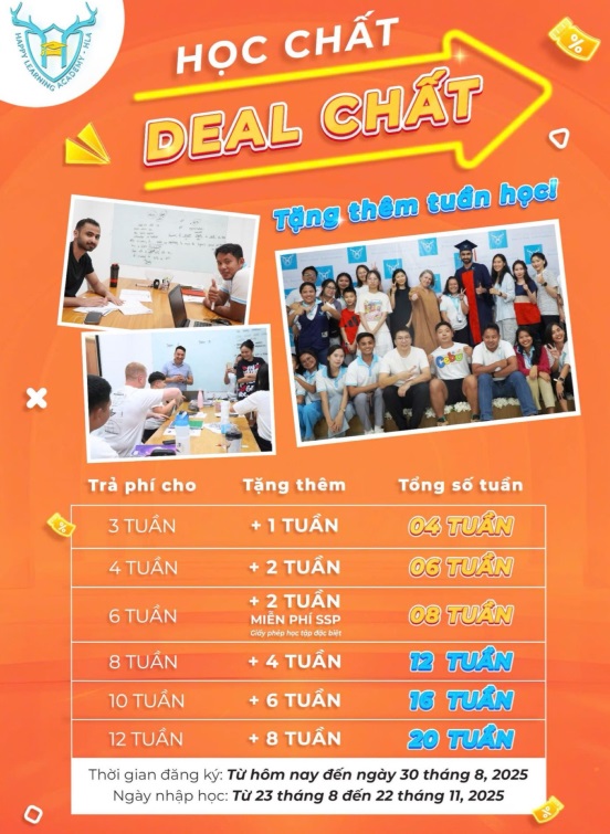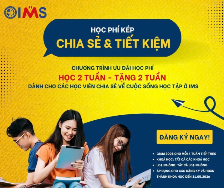 Gia hạn, đăng ký từ 4-6 tuần và nhập học từ 22/12 đến 16/2/2026: Giảm 150$/4tuần.