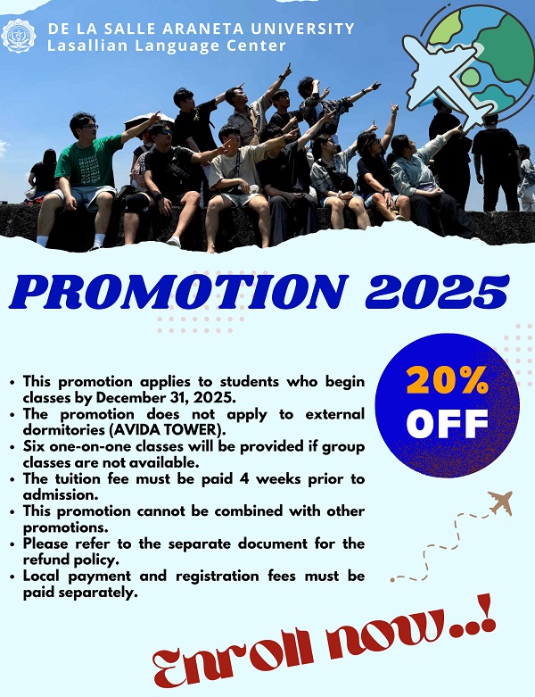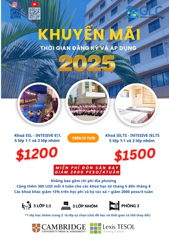 Một chiếc BIG PROMOTION SIÊU HOT từ Trường Anh ngữ LSLC chỉ từ 1090 USD/ 4 tuần gồm học phí + phòng ở ký túc xá + ăn uống mỗi ngày + giặt giũ + dọn phòng… Chương trình áp dụng nhập học từ tháng 3/2025 đến 31/5/2025.