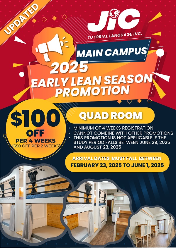 - Giảm 30% học phí và KTX cho tất cả các khóa học từ 4 tuần, tương đương ESL chỉ từ 980 USD