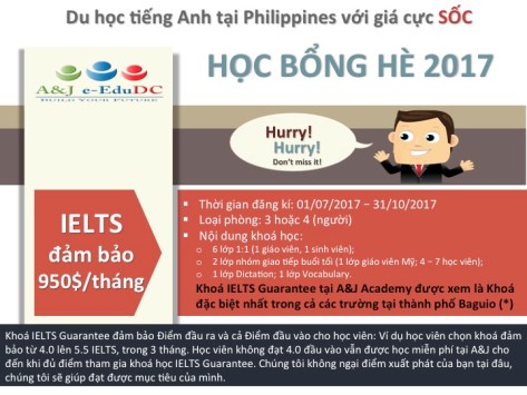 Hiện Trường A&J đang có chương trình học bổng ưu đãi du học tiếng Anh tại Philippines hấp dẫn: