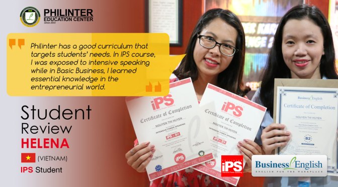 First of all, Philinter has a good curriculum that targets students’ needs. In IPS course, I was exposed to intensive speaking while in Basic Business, I learned essential knowledge in the entrepreneurial world. Both of the courses have given me the chance to learn English continuously and absorb it naturally.