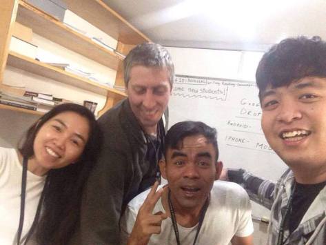 Các nhân viên của trường đều thân thiện và nhiệt tình. Khi gặp học viên, họ luôn mỉm cười và sẵn sàng giúp đỡ học viên nếu có vấn đề gì chưa rõ. Nhân viên của trường đầu tiên mình gặp là bảo vệ, ấn tượng mãi vì hôm mới đến mình ngỏ ý phụ mang hành lý lên, nhưng anh ấy không chịu để mình giúp, mặc dù đồ đạc rất nặng song vẫn cười rất tươi. Bạn quản lý học viên Việt Nam cũng rất gần gũi, luôn quan tâm hỏi thăm về quá trình học của mọi người. Nếu bạn có bất kỳ thắc mắc gì đều có thể hỏi Dominic. Anh ấy cũng rất hài hước và nhiệt tình, nên cũng không có gì phải e ngại. Bạn cùng phòng với mình là người Hàn. Mặc dù ban đầu giao tiếp có chút khó khăn nhưng đây là cơ hội để luyện tập tiếng Anh hằng ngày. Thời gian sau việc giao tiếp trở nên dễ dàng hơn và chúng tôi trở thành những người bạn thân thiết.