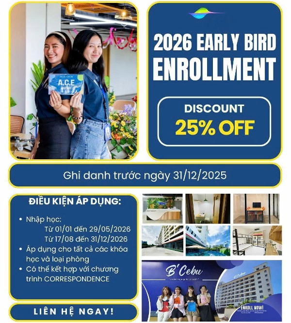 - Học phí và phí ký túc xá sau là chi phí chính thức từ B Cebu, chưa áp dụng với các chương trình hỗ trợ, học bổng và khuyến khích học tập.