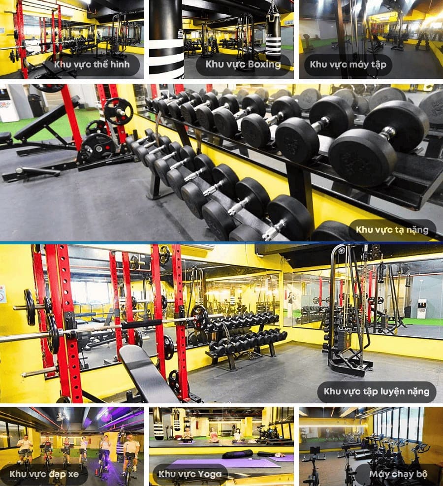 - 4 lớp học tiếng Anh chuyên môn: Quyền Anh Kickboxing, Đạp xe trong nhà Spin Class, Nhảy Zumba, Yoga, Nâng tạ Weight Training, Aerobics